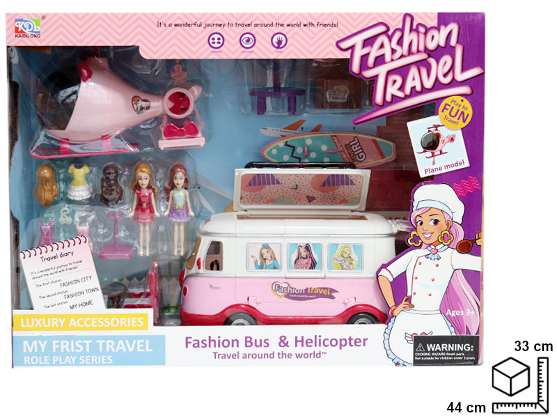 BUS Y HELICOPTERO CON ACCESORIOS EN PLASTICO 44*33*12.5CM